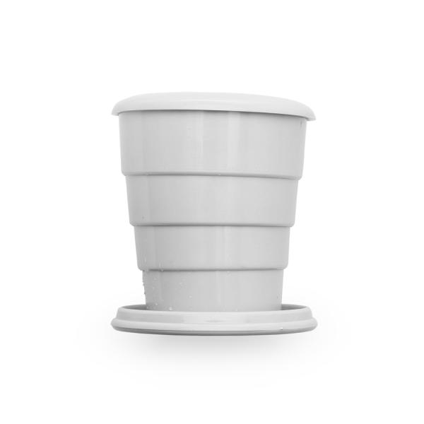 Copo retrátil em fibra de arroz de 200ml com porta comprimidos.