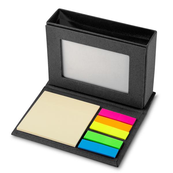 Bloco de anotações com 5 conjuntos de autoadesivos, com 20 folhas cada.