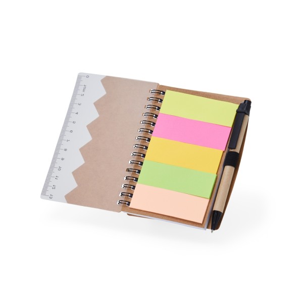 Bloco de anotações em papelão reciclado, contendo: 5 Sticky notes colorido...