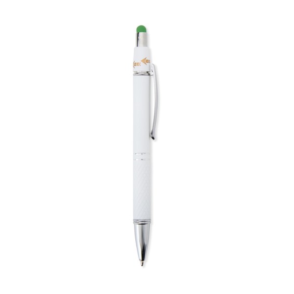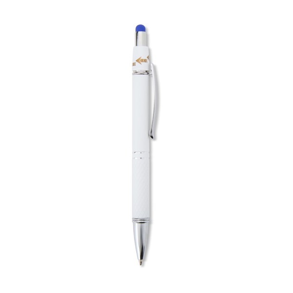 Caneta esferográfica em alumínio com ponteira touch. Até 2km de escrita.