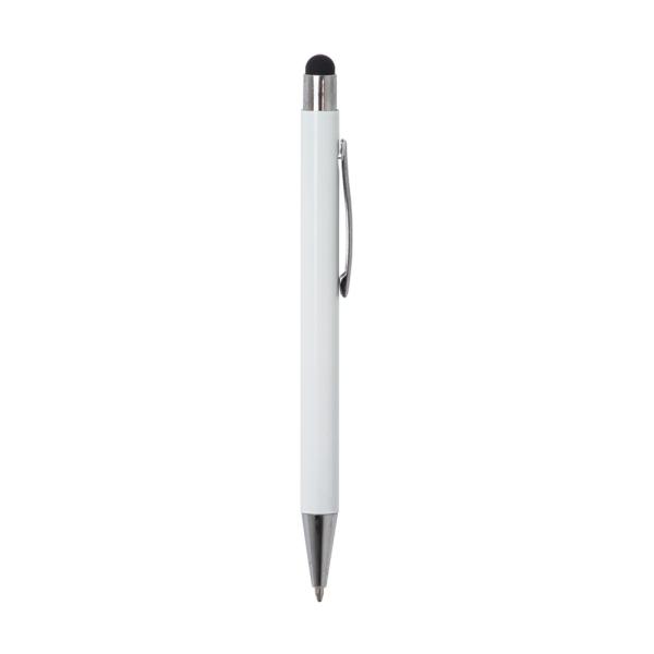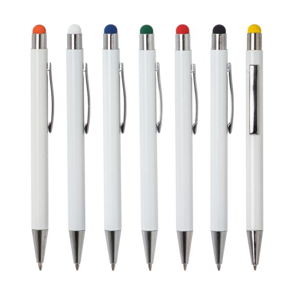 Caneta de papelão com detalhes plásticos, contém suporte para celular e touch...