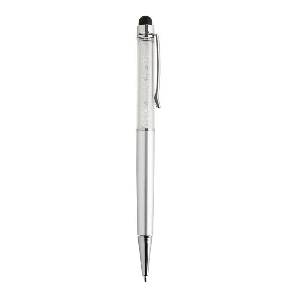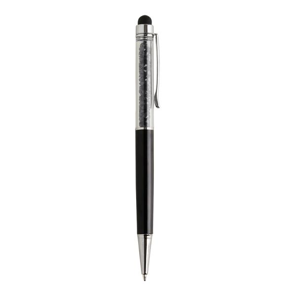 Esferográfica em metal com ponteira touch e mecanismo twist. Fornecida com es...