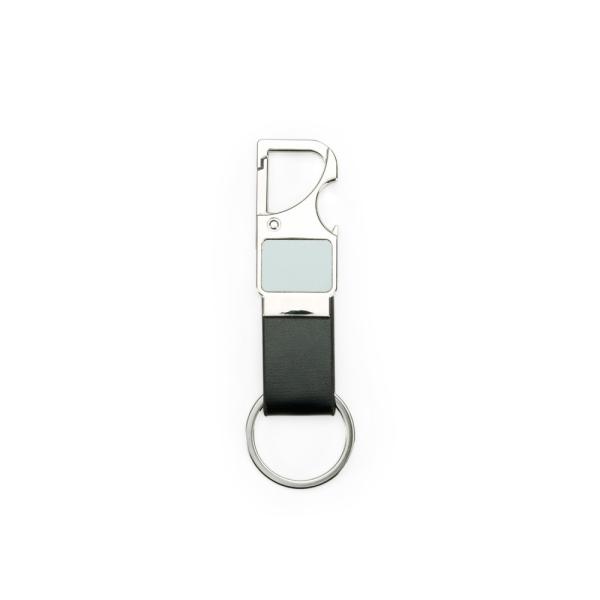 Chaveiro metal 3 em 1: abridor, cortador e lixa. Parte central circular ideal...