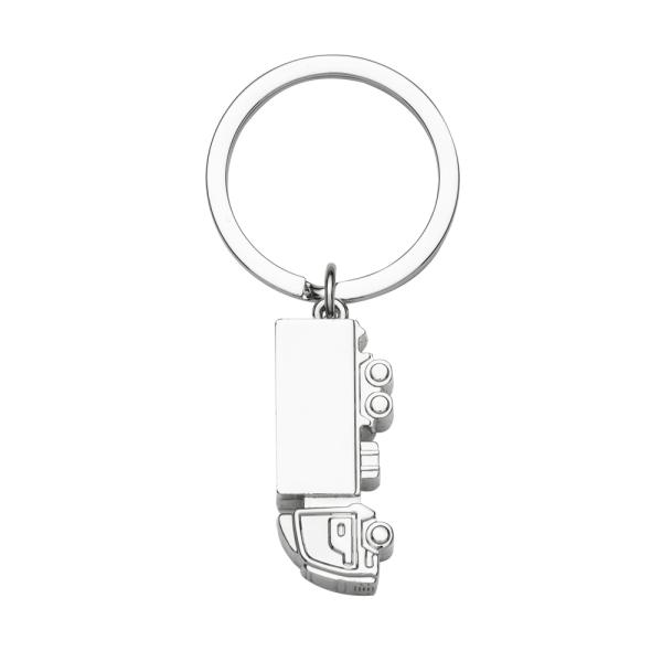 Chaveiro metálico brilhante e compacto, com formato de caminhão e argola em f...