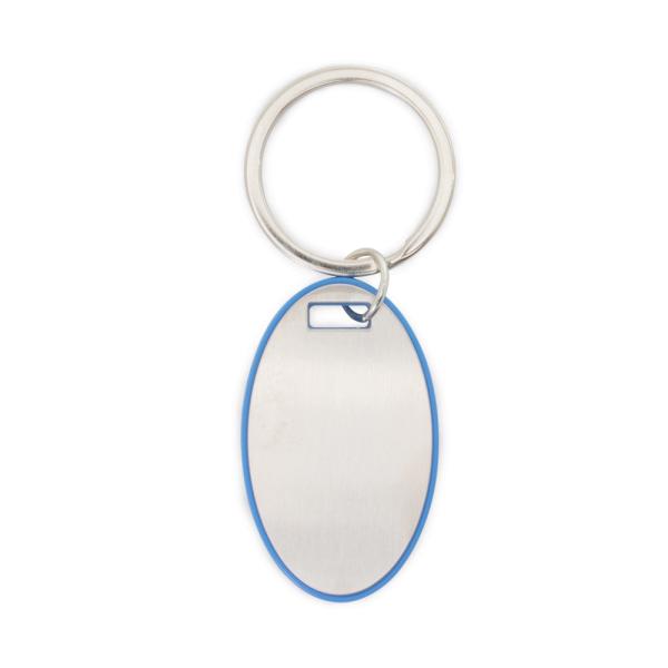 Chaveiro com detalhe plástico e chapa metálica grafite, personalizável frente...