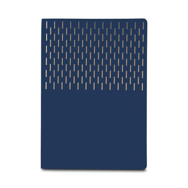 Caderno A5 de capa dura em couro sintético com 160 páginas lisas.