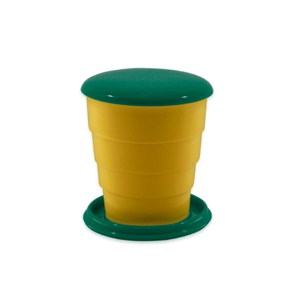 Copo retrátil em fibra de arroz de 200ml com porta comprimidos.