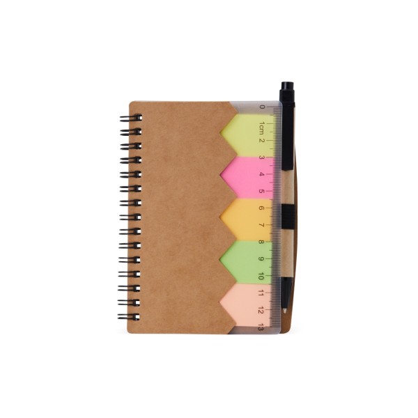 Bloco de anotações ecológico com post-it e suporte para caneta. Bloco de capa...