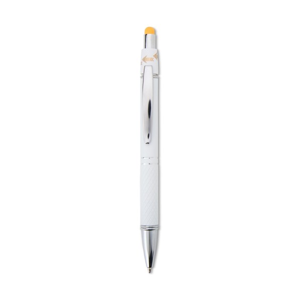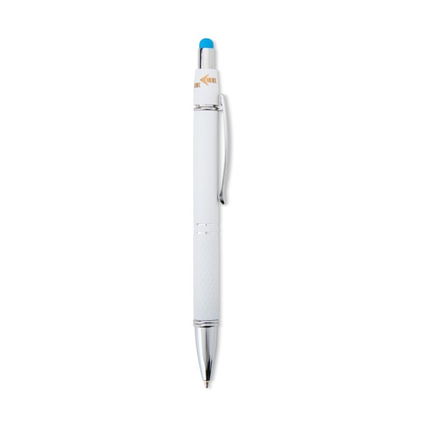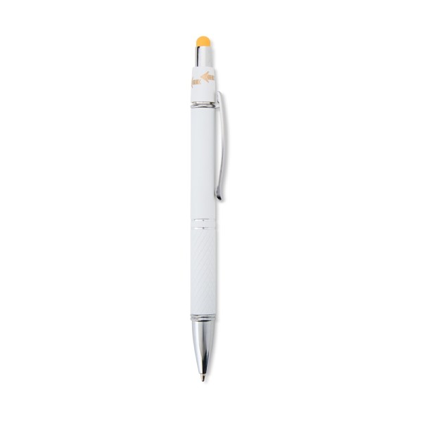 Caneta esferográfica em alumínio com ponteira touch. Até 2km de escrita.