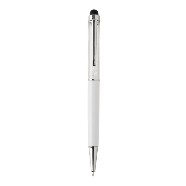 Esferográfica em metal com ponteira touch e mecanismo twist. Fornecida com es...