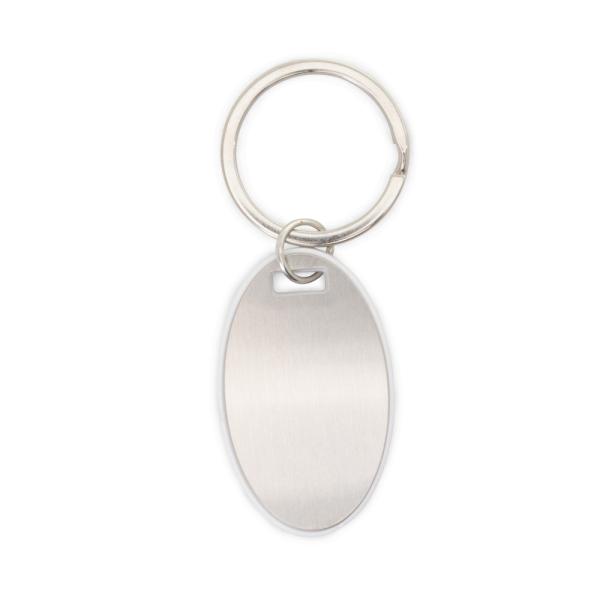 Chaveiro com detalhe plástico e chapa metálica grafite, personalizável frente...