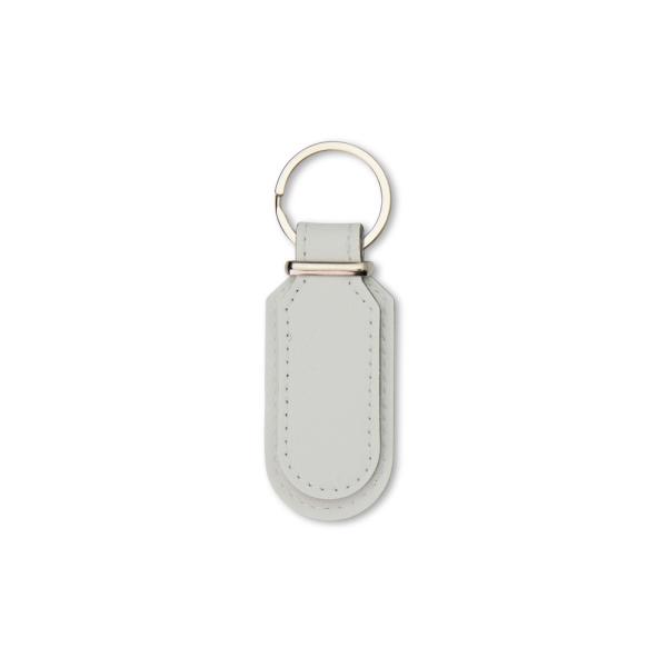 Descrição: Chaveiro em formato minimalista em couro sintético com frente e verso lisos e argola de ferro niquelado.